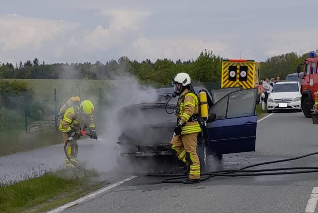 Um 12:01 Uhr wurde unsere Ortsfeuerwehr zu einem brennenden Pkw auf der S148 alarmiert. Wir rückten mit TLF 16/25, HLF 10, KdoW und TSW-W aus.