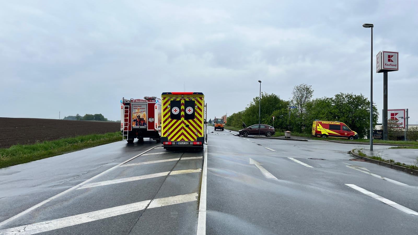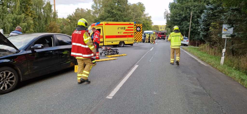 Um 15:38 Uhr wurde unsere Ortsfeuerwehr zu einem Unfall auf die Hauptstraße Kreuzung „Goldener Löwe“ alarmiert. Dort waren drei Pkw zusammengestoßen. Wir rückten mit HLF 10, DLK 23/12 und TLF aus und sicherten die Unfallstelle. Die Versorgung der Verletzten übernahm der Rettungsdienst. Landespolizei, Bundespolizei sowie ein Unternehmen zur Reinigung der Fahrbahn (Entfernung ausgetretener Betriebsstoffe) waren ebenfalls im Einsatz.