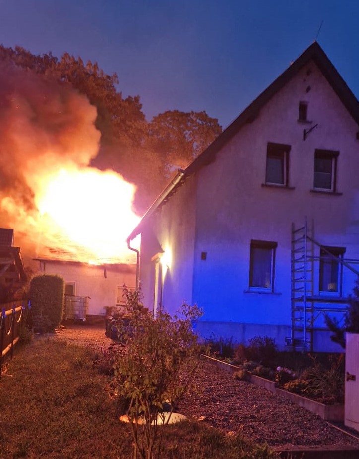 Um 04:46 Uhr alarmierte die IRLS Ostsachsen beide Ortsfeuerwehren zum Brand eines Schuppens an der Förstereistraße. Wir rückten mit HLF 10, TLF 16/25 und KdoW aus. Die OF Neugersdorf kam mit MZF, HLF 20, LF 10, TLF-W und GW-N vor Ort. Beim Eintreffen der ersten Kräfte stand der Dachstuhl des Gebäudes im Vollbrand.