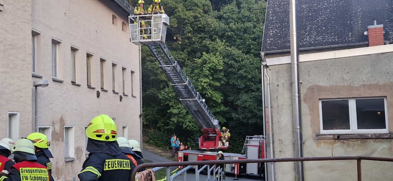 Zu einem Dachstuhlbrand auf der Hauptstraße im OT Ebersbach/Sa. wurden um 20:19 Uhr beide Ortsfeuerwehren alarmiert. Wie sich herausstellte, brannte es aber nicht auf der Hauptstraße sondern auf der Bautzener Straße. Also eilten die Einsatzkräfte dort hin und stellten einen Brand im Gebäude fest, der zwar noch nicht auf den Dachstuhl übergeriffen hatte aber dennoch mit enormer Rauchentwicklung einherging.