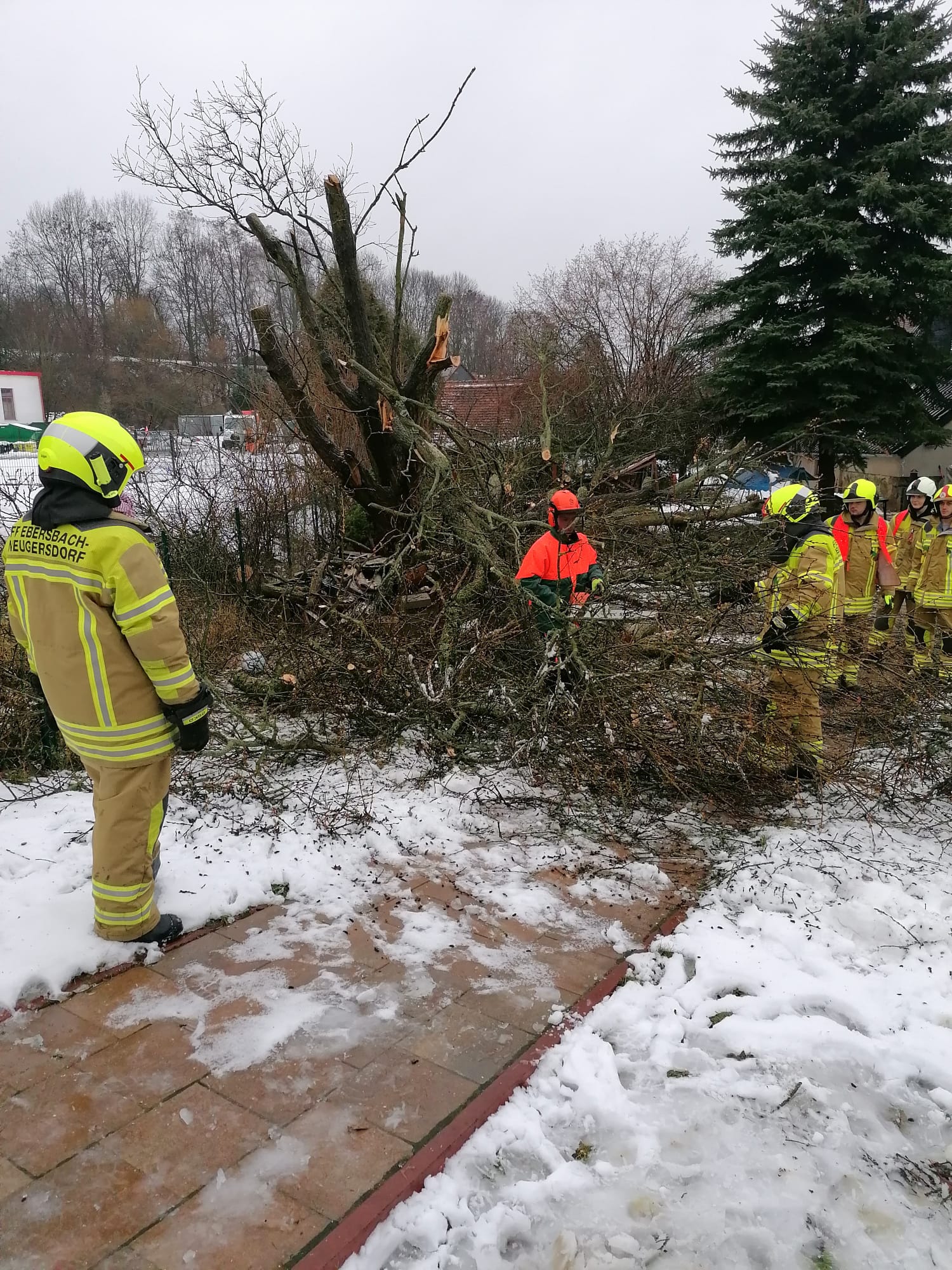 Wegen eines umgestürzten Baumes auf der Straße Am Bahnhof im OT Neugersdorf wurde um 12:17 Uhr die Stadtschleife alarmiert. Wir rückten mit dem HLF 10 aus, vom Standort Neugersdorf kam das HLF 20 vor Ort. Die Einsatzstelle wurde abgesperrt und der Baum mittels Motorkettensägen soweit zerkleinert, dass die Äste neben der Fahrbahn aufgehäuft werden konnten.