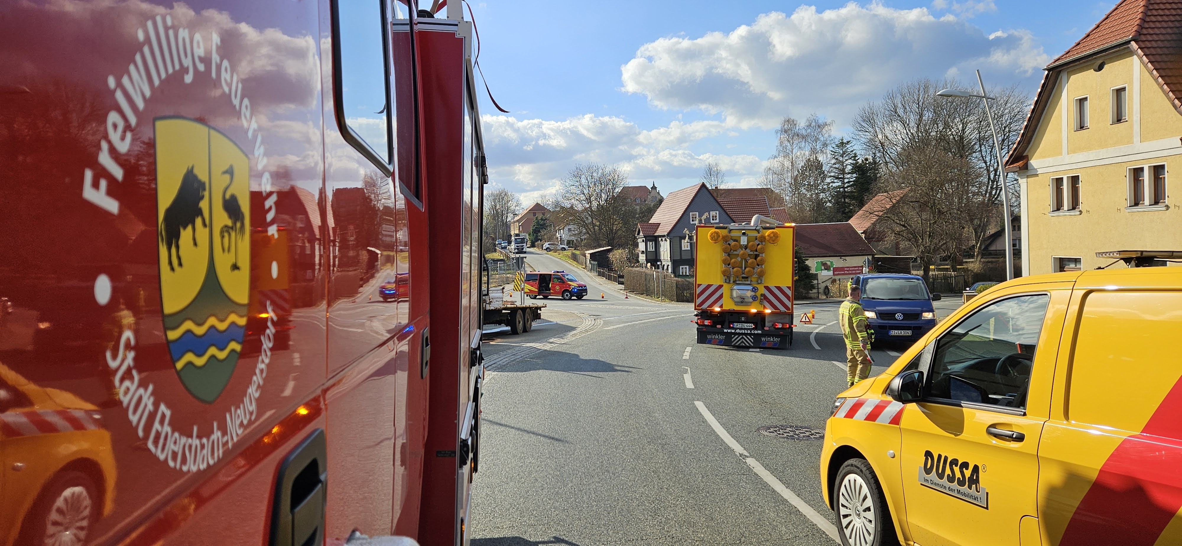 Wir rückten mit KdoW und HLF 10 aus. Die OF Neugersdorf kam ebenfalls hinzu und unterstützte bei der Straßensperrung am „Goldenen Löwen“. Durch den Einsatz von Ölbindemittel konnte verhindert werden, dass ausgelaufenes Öl in die Kanalisation gelangte. Um eine Gefahr für den fließenden Verkehr zu verhindern wurde die Straße für kurze Zeit voll gesperrt. Nach Eintreffen der Landespolizei konnte eine Spur wieder freigegeben und der Verkehr an der Gefahrenstelle vorbeigeleitet werden. Zur Reinigung der Fahrbahn kam ein Spezialunternehmen zum Einsatz.