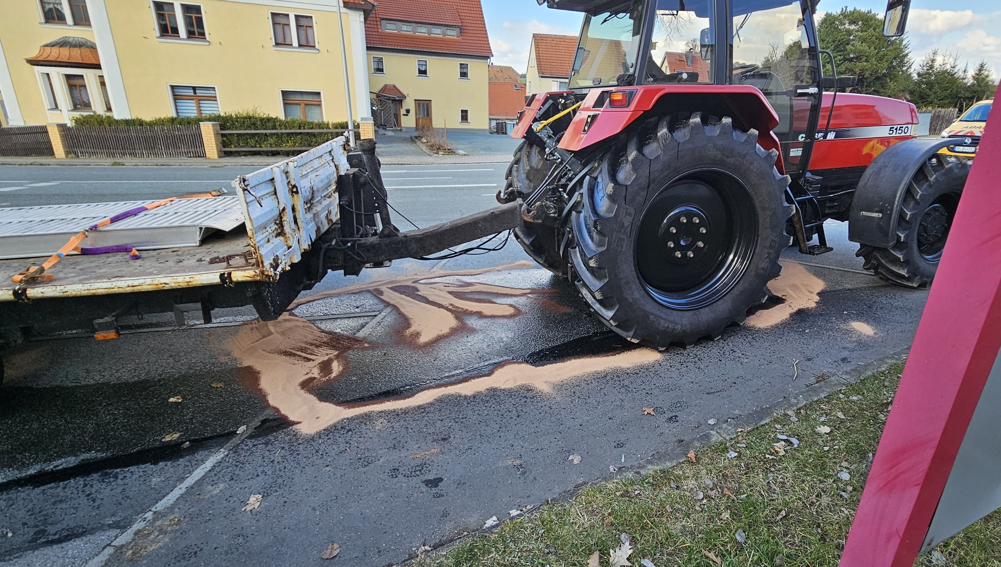 Die Reinigung der Fahrbahn übernahm nach Abschluss unserer Maßnahmen ein Spezialunternehmen. Die Ermittlung der Unfallursache wird Aufgabe der Polizei sein, die ebenfalls mit im Einsatz war.