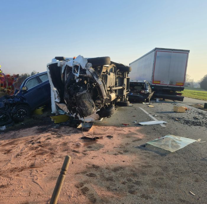 Die IRLS Ostsachsen alarmierte um 16:07 Uhr beide Ortsfeuerwehren zu einem Verkehrsunfall auf der S148. Dort war es zu einem Zusammenstoß von 2 Pkw, 1 Wohnmobil und einem LKW gekommen.