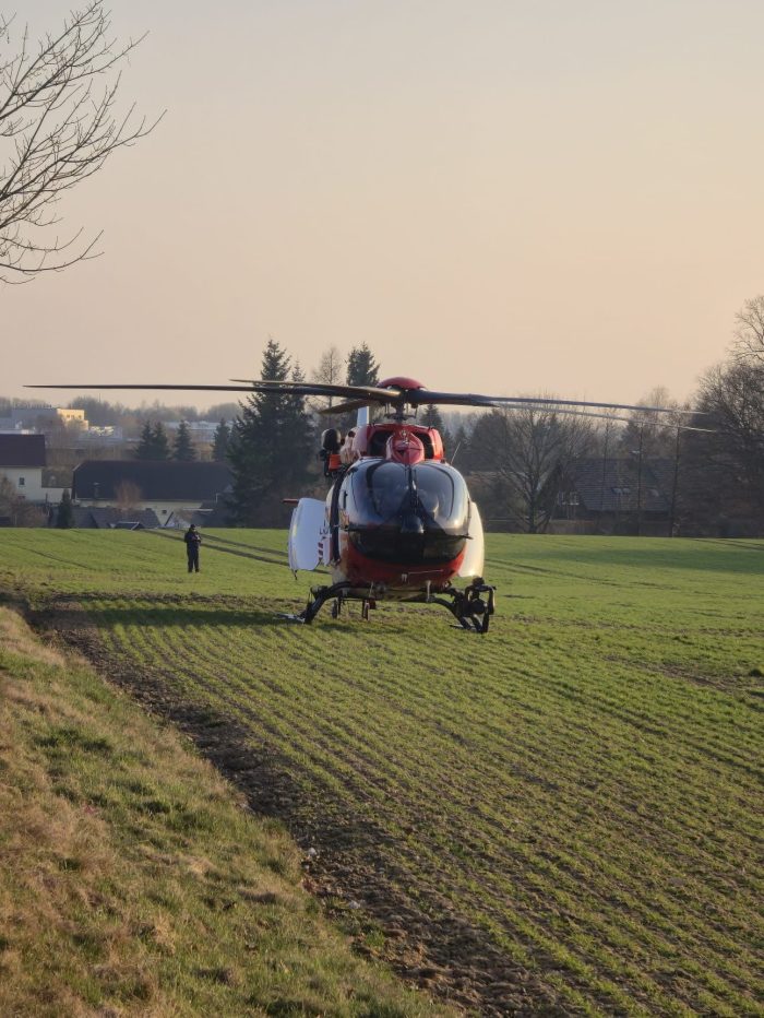 Beim Eintreffen der ersten Kräfte war der Rettungsdienst bereits vor Ort. Kurz nach unserem Eintreffen landete auch der RTH auf einem angrenzenden Feld. Auf Grund der vorgefundenen Lage musste die Straße voll gesperrt werden.