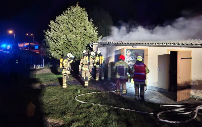 Die Landespolizei war ebenfalls mit vor Ort. Über die Brandursache ist bisher nichts bekannt.