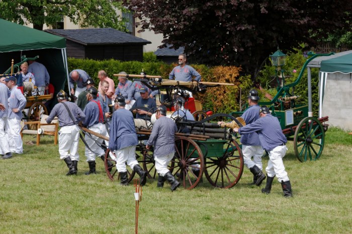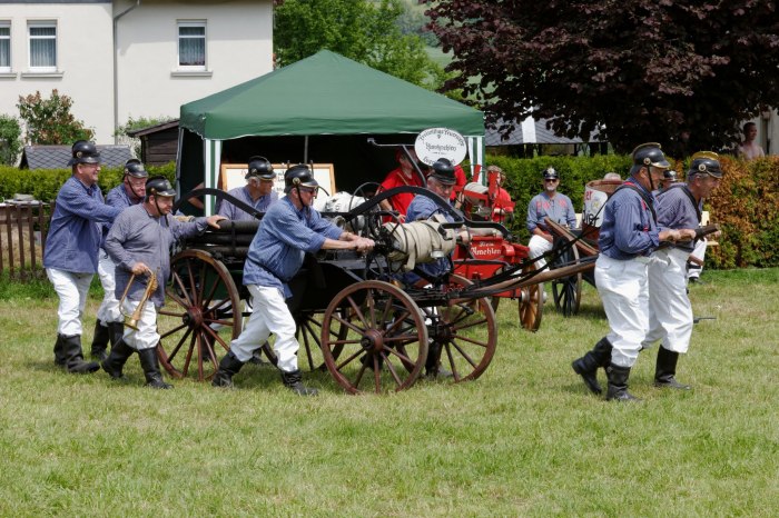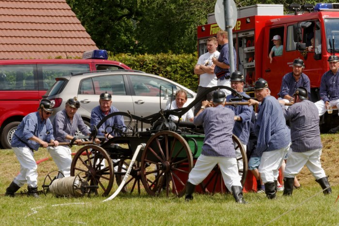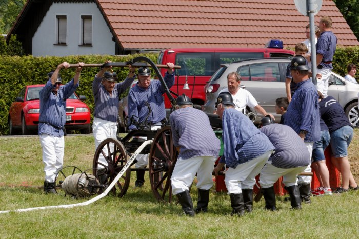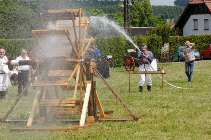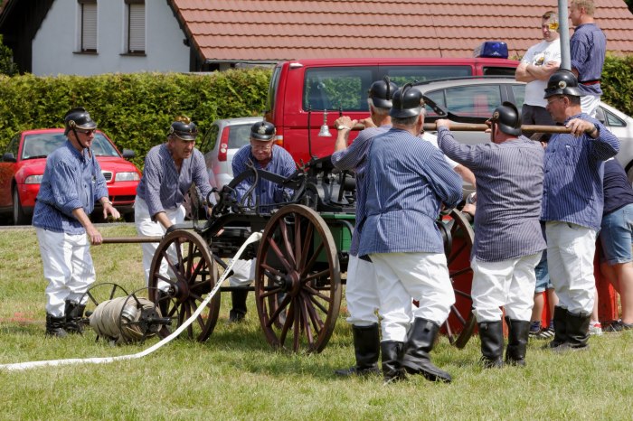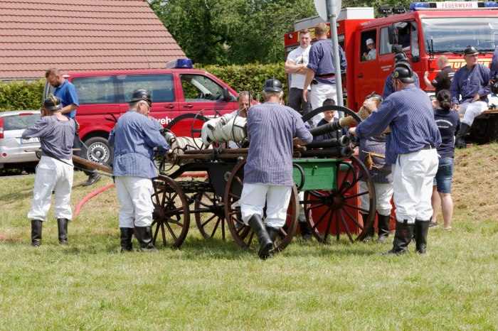 Ganz besondere Höhepunkte waren die Handdruckspritzenwettbewerbe, bei denen die Funktionsfähigkeit unserer alten Handdruckspritze unter Beweis gestellt werden konnte.