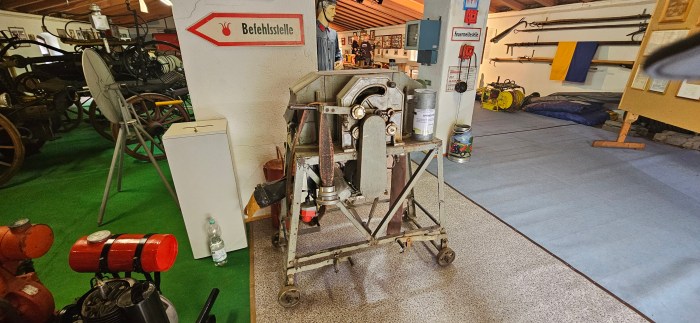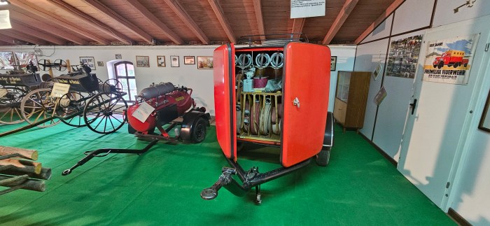 Der erste Schritt war getan. Doch ein neues Problem tat sich auf. Die Wehr hatte in früheren Zeiten mehrere im Ort verstreute Gerätehäuser. Es galt nun abzuwägen, welche von diesen noch benötigt wurden. Hierbei stand plötzlich die Frage: „Wohin mit der Alttechnik ?“. Nach einigem hin und her wurde eine gute und letzlich auch einfache Lösung gefunden. Auf dem Hof, auf welchem sich auch das Gerätehaus befindet, war ein ehemaliger Lagerraum einer Wohnungsverwaltung frei geworden. Man einigte sich recht schnell und so standen uns plötzlich über 100 m² neue Ausstellungsfläche für die fahrbare Alttechnik zur Verfügung.
