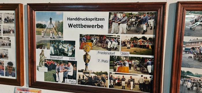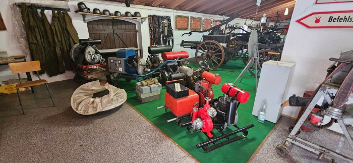 Und wieder waren es unsere Alterskameraden, die mit großen Engagement und Fleiß aus einem eher schlicht gestalteten Funktionsraum ein kleines Prachtstück gestalteten. Heute können Besucher unserer Feurewehr wieder eine sehr umfangreiche Sammlung historischer Ausrüstungsgegenstände und Dokumente besichtigen. Darunter alte Handdruckspritzen und Schlauchwagen, Tragkraftspritzen und Leiter, Feuerlöscher, Uniformen, wasserführender Armaturen und vieles mehr.Trotz dieser vielfältigen bereits vorhandenen Ausstellungsstücke sind wir ständig bemüht, die Ausstellung weiter zu ergänzen und zu aktuallisieren. Von Bürgern und Freunden der Feuerwehr sowie der benachbarten Wehren kommen immer wieder neue Raritäten dazu, auch wenn es vielfach nur Leihgaben sind.